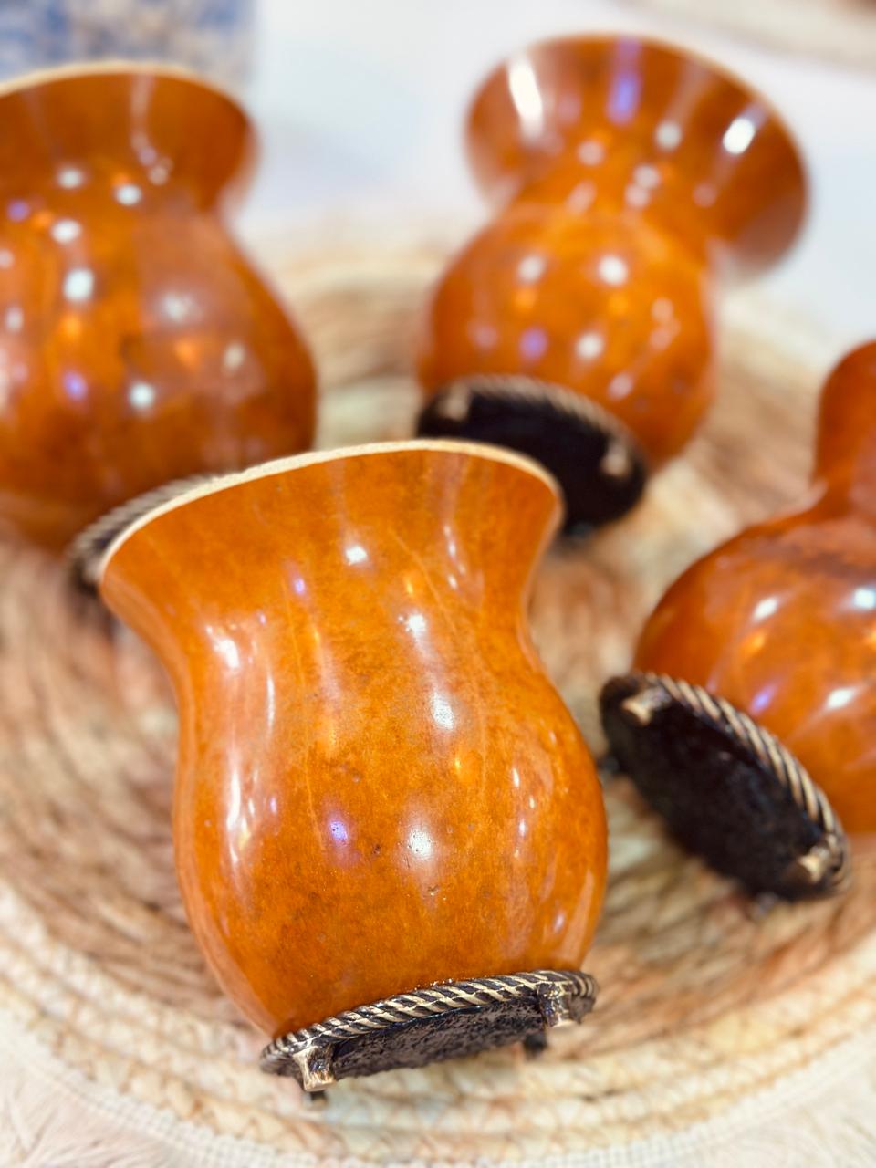 A cuia de porongo é feita artesanalmente com produto natural, o porongo. Tem na sua forma rústica a verdadeira beleza do tradicional chimarrão gaúcho.